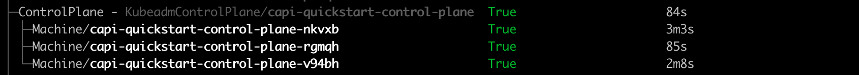 For example clusterctl describe cluster capi-quickstart will provide an output similar to: