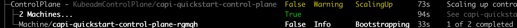 only the ready condition). e.g. with --show-conditions KubeadmControlPlane you get: